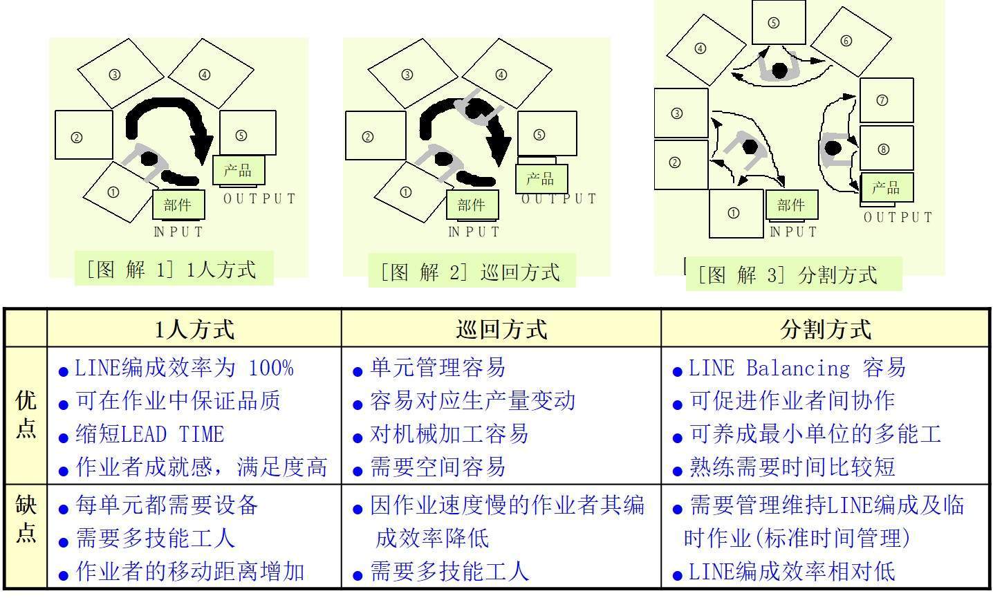 是指無傳送帶LINE,從頭到尾由作業(yè)者負(fù)責(zé)執(zhí)行業(yè)務(wù)的自己完結(jié)型的 生產(chǎn)方式。