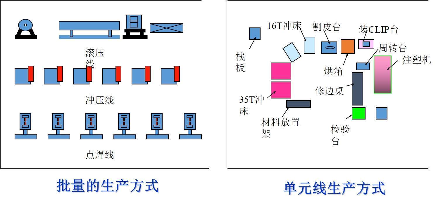 11.批量生產(chǎn)方式與單元線生產(chǎn)方式: