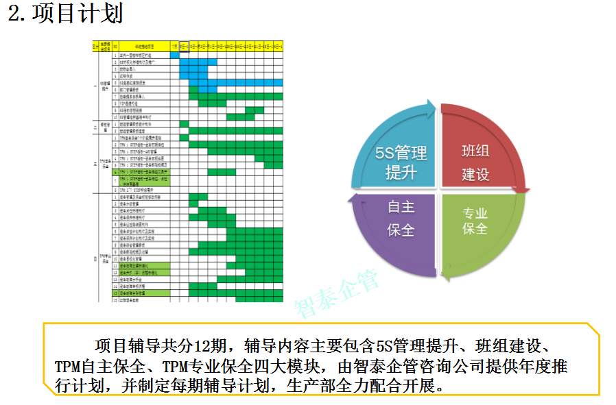 智泰咨詢公司給企業(yè)提供專業(yè)的5S管理,6S管理,TPM管理落地輔導與培訓服務(wù),給企業(yè)提供免費上門調(diào)研服務(wù),給企業(yè)免費提供5S,6S管理,TPM管理定制化落地輔導方案。
