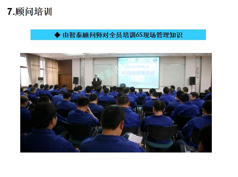 智泰咨詢公司給企業(yè)提供專業(yè)的5S管理,6S管理,TPM管理落地輔導與培訓服務,給企業(yè)提供免費上門調研服務,給企業(yè)免費提供5S,6S管理,TPM管理定制化落地輔導方案。