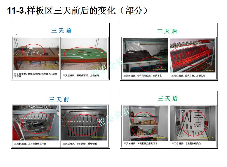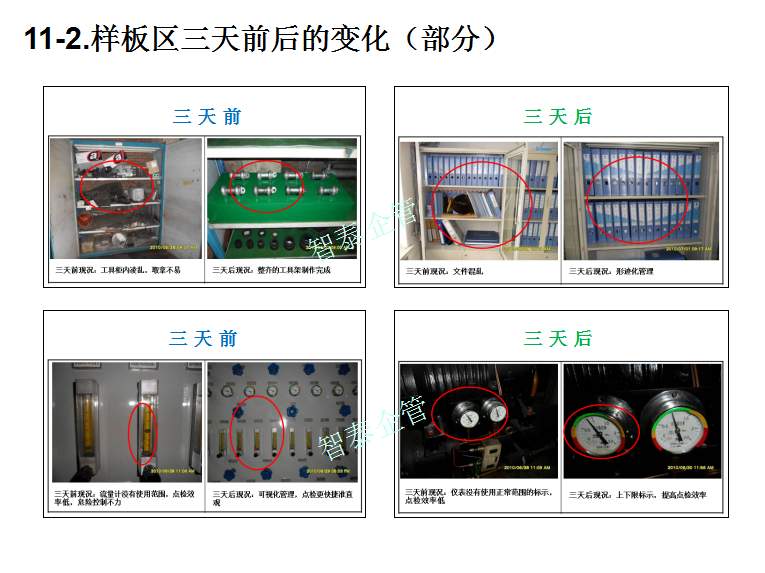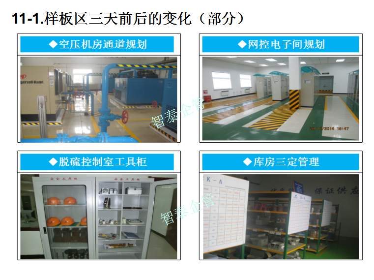 智泰咨詢下屬的5S管理公司首創(chuàng)的產品三天一標桿,三天一條線,三天締造6~8個標桿車間,智泰咨詢專業(yè)的顧問團隊為企業(yè)的5S管理快速打造已形成一套標準化內容。