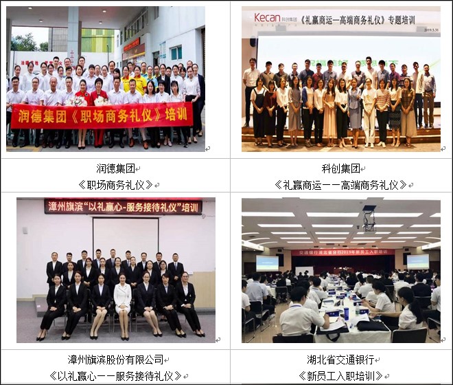 ? 曾為深圳鵬海運(yùn)公司定制化開發(fā)禮儀課程從禮儀的立場、形象禮儀、社交禮儀、服務(wù)與溝通禮儀多方位塑造,為公司打造一支精英團(tuán)隊。