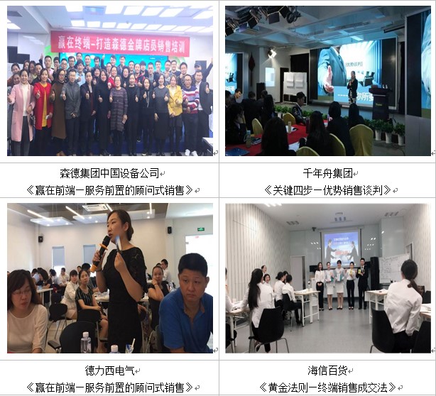 ★老師配合森德集團中國設備公司分別在合肥、西安、沈陽、北京共講授6期《顧問式銷售—金牌訓練營》,訓練其經(jīng)銷商和其骨干人員近300余人,獲得企業(yè)內外成員的高度認可,并將課程納入到了森德訓練體系教材。