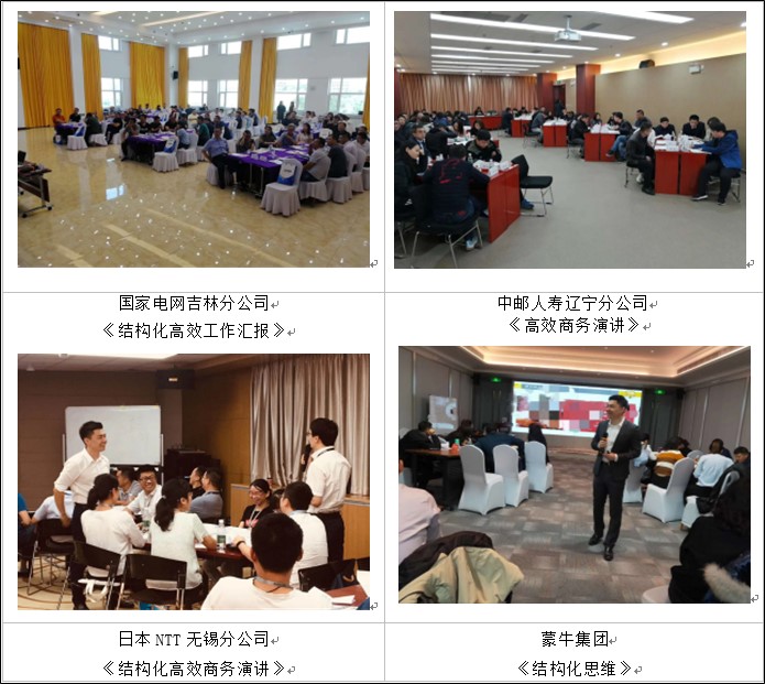 ■大連花旗金融連續(xù)兩年特邀講師,《制勝時(shí)刻——結(jié)構(gòu)性思維與高效表達(dá)》3期,《重要時(shí)刻——職場(chǎng)性格分析與高效溝通》4期,《向下管理》4期等,累計(jì)學(xué)員330人次,學(xué)員好評(píng)如潮,課程好評(píng)率97%以上。
