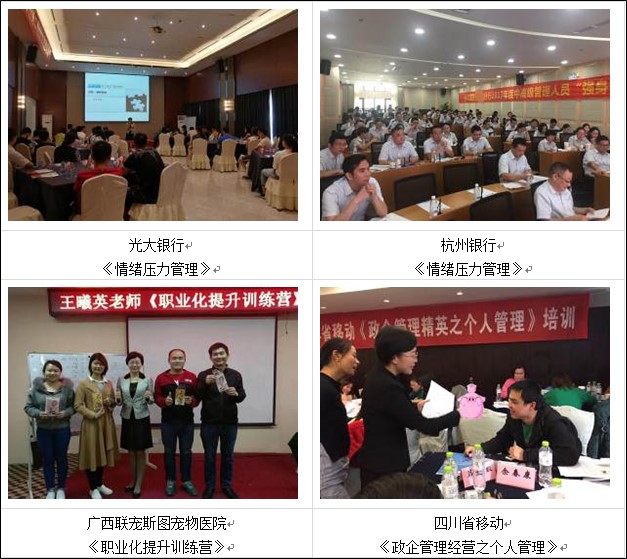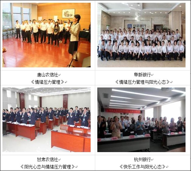 本課程根據(jù)多年為銀行從業(yè)人員心理培訓的經(jīng)驗,針對銀行人普遍困擾的心理健康問題,應用心理學管理中的四大方向:生理干預、精神分析、人本主義、行為主義,科學系統(tǒng)的讓學員健康心理,管理情緒和壓力,提升心理健康指數(shù),從而為企業(yè)創(chuàng)造更高的績效。