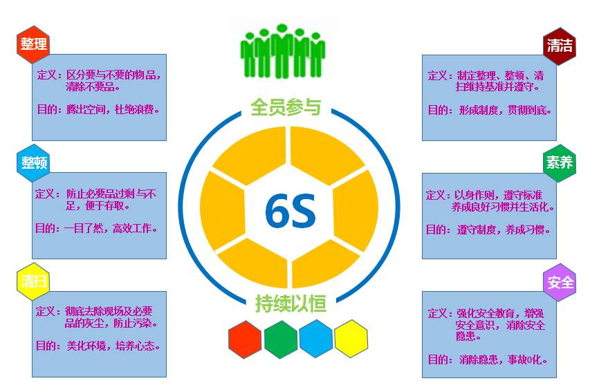 5S咨詢公司中對于5S管理的解釋是最早起源于日本,指的是在生產(chǎn)現(xiàn)場中對人員、機器、材料、方法、環(huán)境等生產(chǎn)要素進行高效管理,形成一套企業(yè)現(xiàn)場管理的體系,促進企業(yè)的發(fā)展。1955年,日本5S咨詢公司的宣傳口號為“安全始于整理整頓,終于整理整頓”,當時只推行了前2S,其目的僅為了確保作業(yè)空間和安全,后因生產(chǎn)控制和質(zhì)量控制的需要而逐步提出后續(xù)的3S,即“清掃”、“清潔”、“素養(yǎng)”,從而使其應用空間及適用范圍進一步拓展,增加“安全”、“節(jié)約”或其它項目成為6S或7S管理......等。